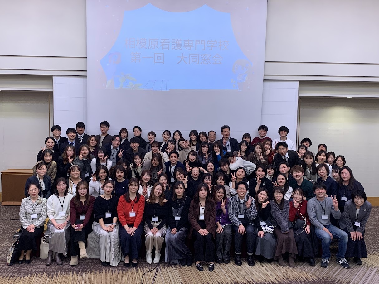 この度、2025年12月6日(土)に開催いたしました「第1回 相模原看護専門学校 大同窓会」は、90名という大変多くの同窓生、並びに恩師にご参加いただき、盛会のうちに無事終了いたしました。ご多忙の折にもかかわらずご来場いただきました皆様に、同窓会役員一同、心より感謝申し上げます。